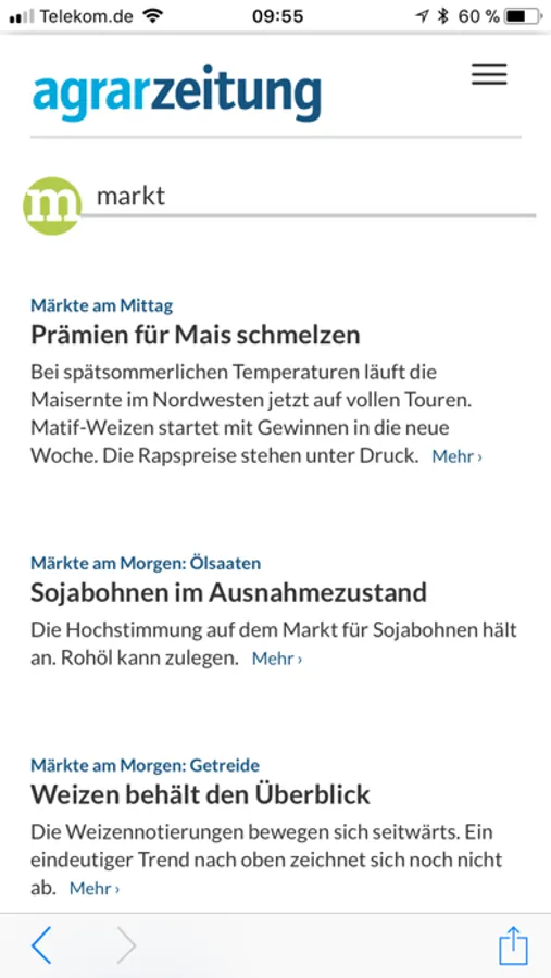 Die az online-App beinhaltet auf das Smartphone optimiert alle aktuellen Nachrichten, Marktdaten und Analysen von agrarzeitung.de.