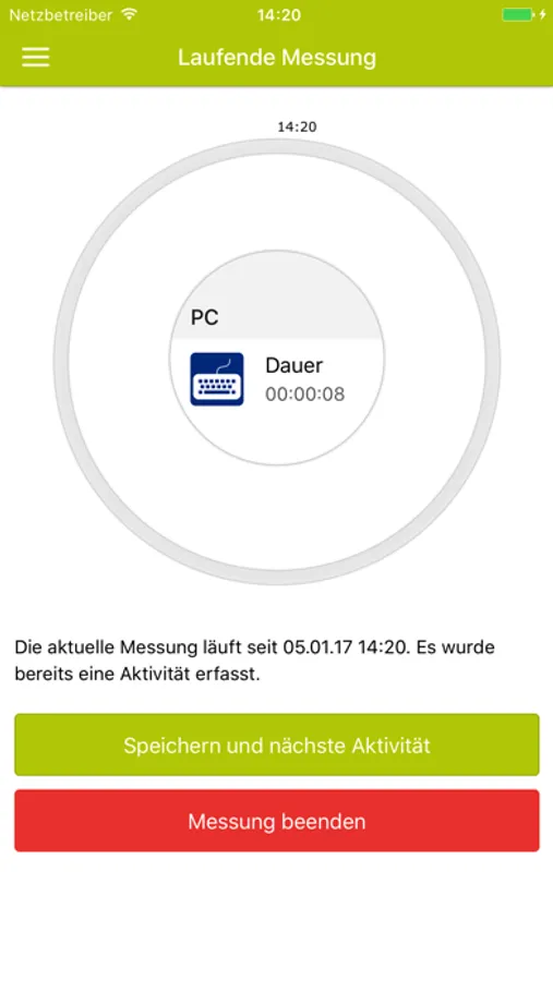 Wenn Sie Ihre HRV-Messung starten, können Sie ein Aktivitätenprotokoll anlegen und über die gesamte Dauer Ihrer Messung Ihre Aktivitäten protokollieren.