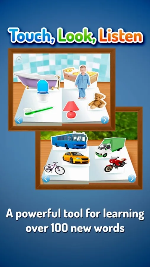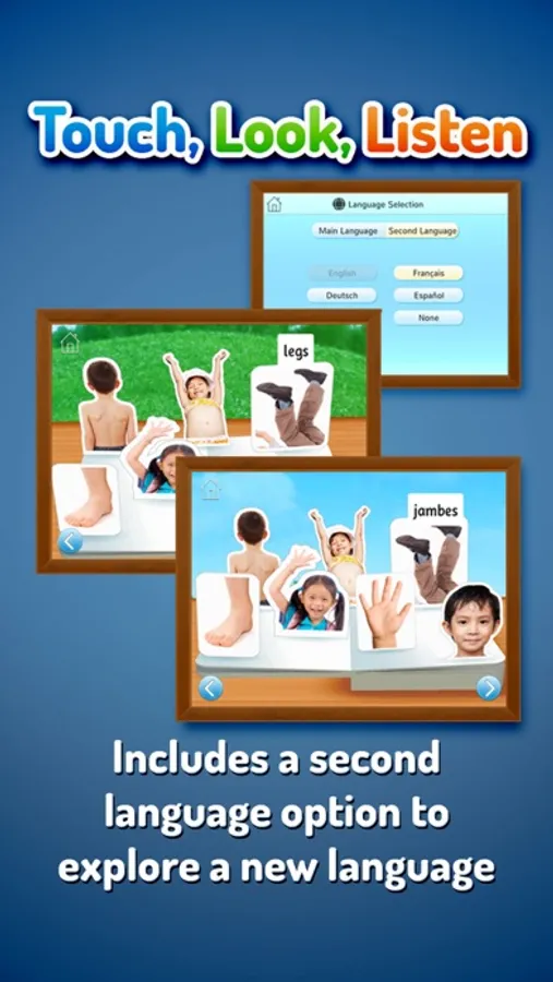 Touch, Look, Listen will delight and encourage children as they learn their first words. It’s the perfect book app for parents and little ones to share, combining superb photographs, simple word labels and friendly narration. It's also great way for children to learn another language, with an option to add a second language that you'd like to see and hear.