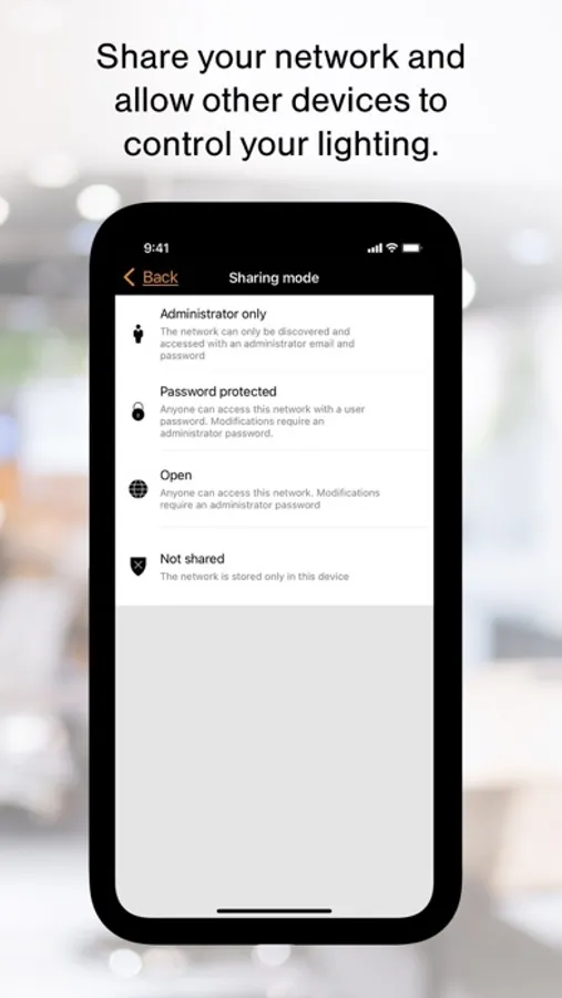 It is possible to control access rights to your lighting network and to define who interacts with it. An assigned ‘administrator’ can make all network changes and give access rights to new users. A ‘manager’ can make changes to all lighting control functionalities but cannot get access to passwords or decide who can access the network. A ‘user’ can only use the network but not make any changes.