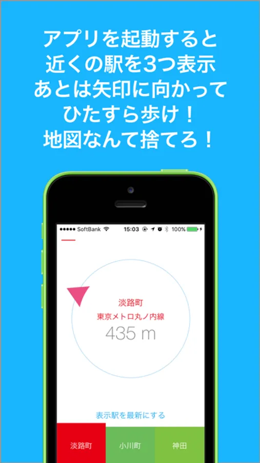 When you found yourself in a unfamiliar place because of having dinner, business trip, travel or got lost, you would think that "I want to go to the nearest station!" At that kind of time, tap and open this app. You will be kindly guided to the nearest station.