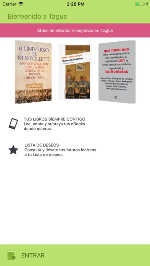 Tagus es tu especialista en libros y ebooks en castellano. Descarga esta aplicación en tu iPhone o en tu iPad y tendrás acceso a toda tu biblioteca Tagus con todos los libros comprados en cualquier tienda de eBooks Tagus.