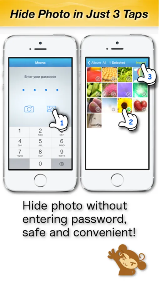 Just 3 steps to encrypt your photos & videos, no need to enter the login password.