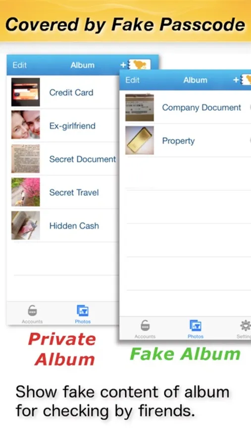 You can login by fake password to show different albums for checking by friend.