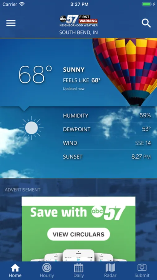The new ABC 57 First Warning Neighborhood Weather app features: