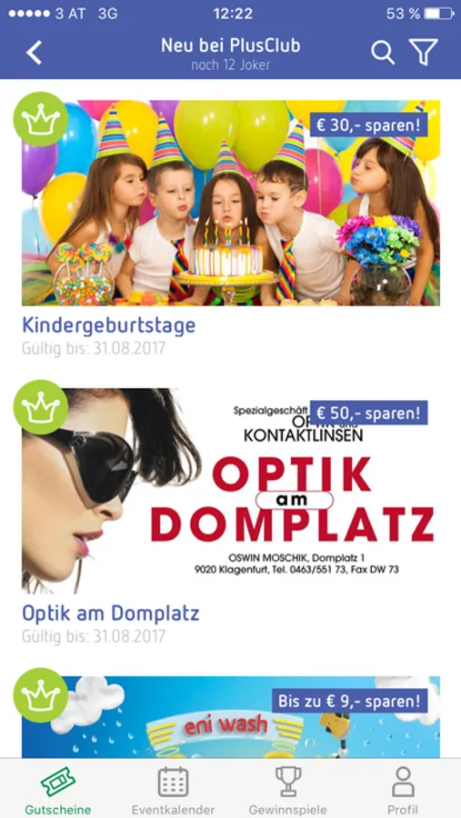 Der Kelag-PlusClub begeistert mit über 200 Ermäßigungen in den Kategorien Kulinarik, Kultur, Freizeit, Shopping und Sport. PlusClub-Mitglieder können so in Summe über € 1.000,- sparen. Besonders beliebt ist auch der PlusClub-Eventkalender, der Tag für Tag Veranstaltungen auflistet, die Mitglieder mit ihren Gutscheinen oder Jokern vergünstigt erleben können – darunter beispielsweise Kabaretts, Konzerte oder Sportbewerbe.