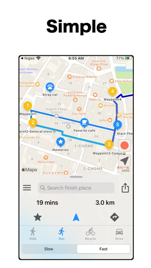 Simple navigation that is ideal for walking and bicycle, and has the following three features.