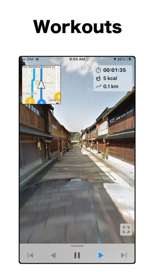 ・ You can enjoy indoor exercise such as treadmills and exercise bikes while watching the autoplay of Street View.