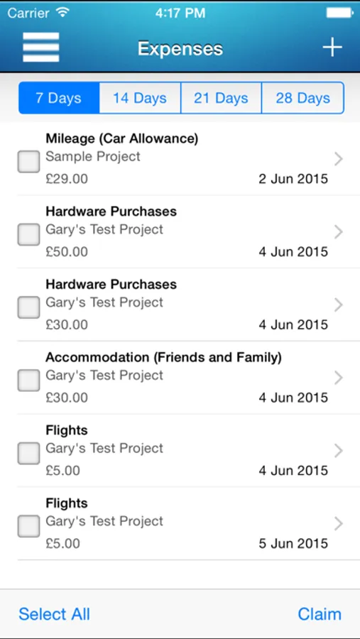 • Capture Expenses – conveniently enter expense items against authorised projects and expense types, and easily attach receipt images, both online and offline.