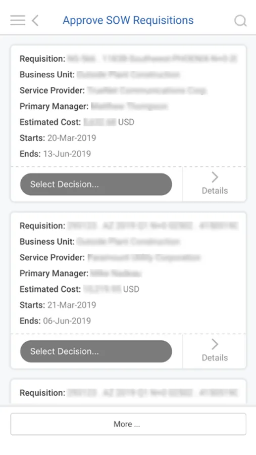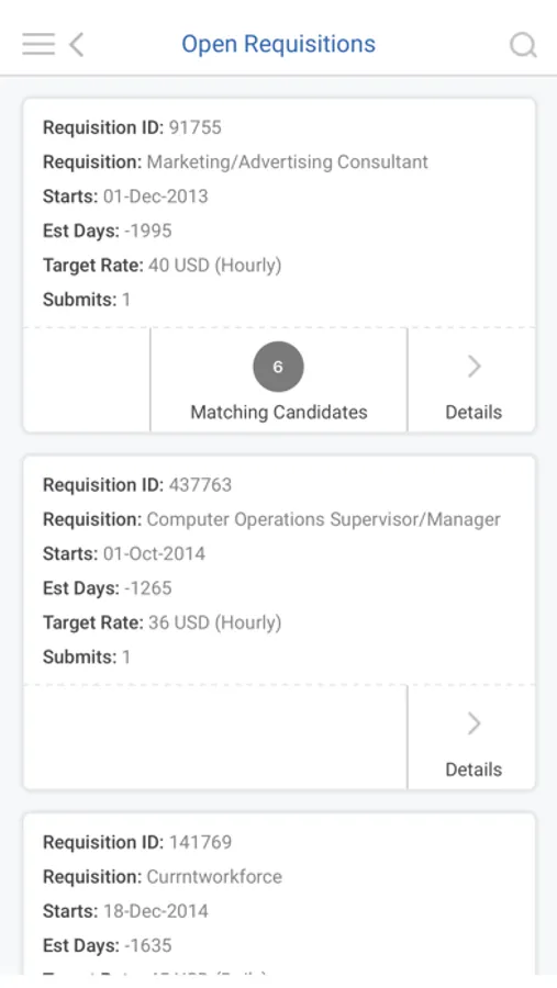 Using Workforce Logiq Mobile, Hiring Managers can quickly view and take action on Staff Augmentation and Statement of Work-based projects including creating and approving requisitions, timesheets, and expense reports, comparing candidates, modifying statement of work engagements, and more.