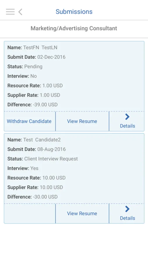 Suppliers can submit candidates, manage candidate interviews, create timesheets and expense reports, view invoices, update invoice number, and more.