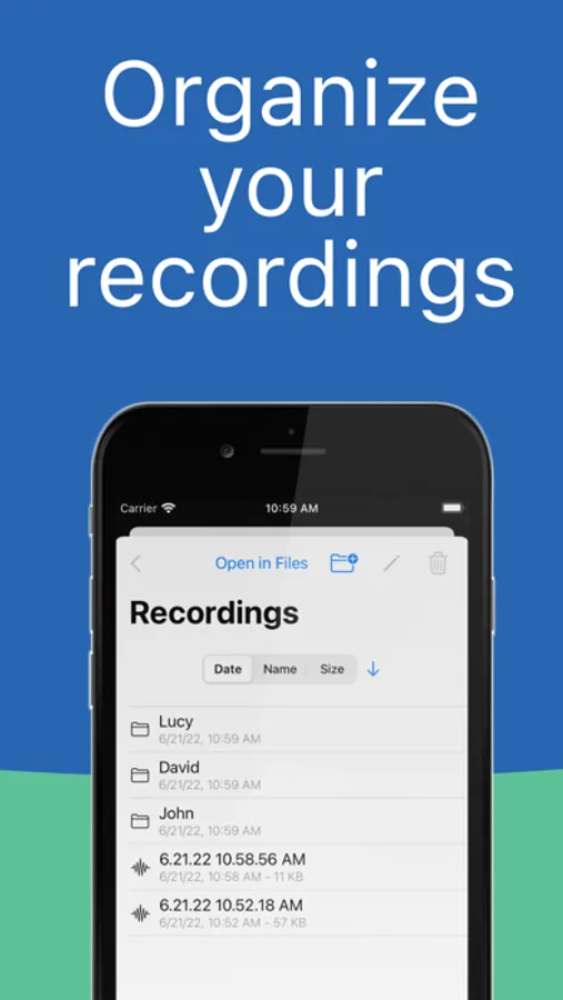 • Save your recording to your device, iCloud, Dropbox and other cloud storage.