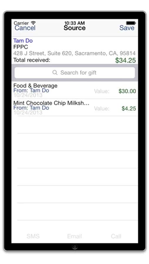 -Contact gift sources via SMS/Call/Email