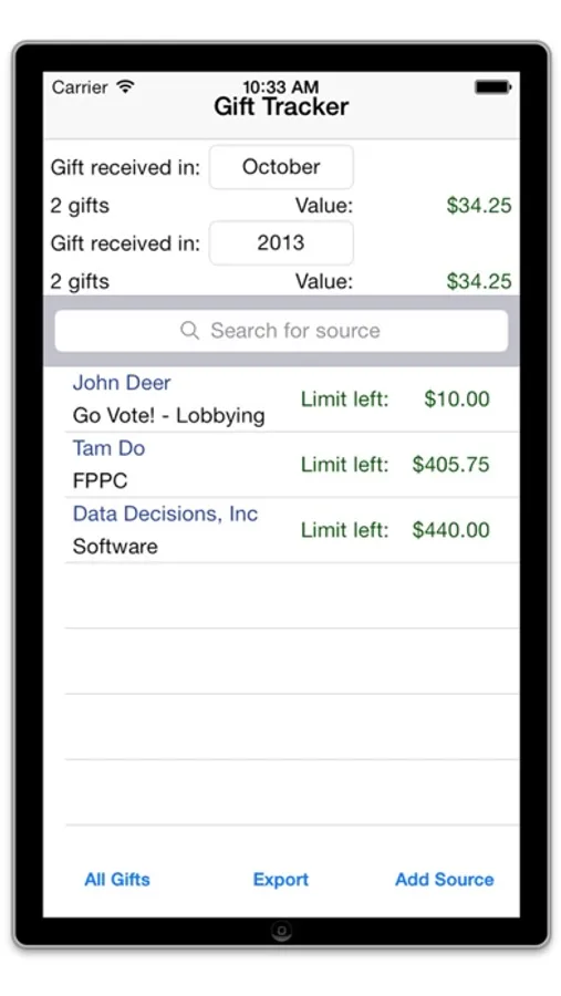 This app is for California state officials and employees who are required to file form 700. It helps keep track of all the gifts you receive in a calendar year and provides a quick and easy way to furnish schedule D (the gift report schedule) of the form 700. All of the data is stored on the phone and is not collected electronically.