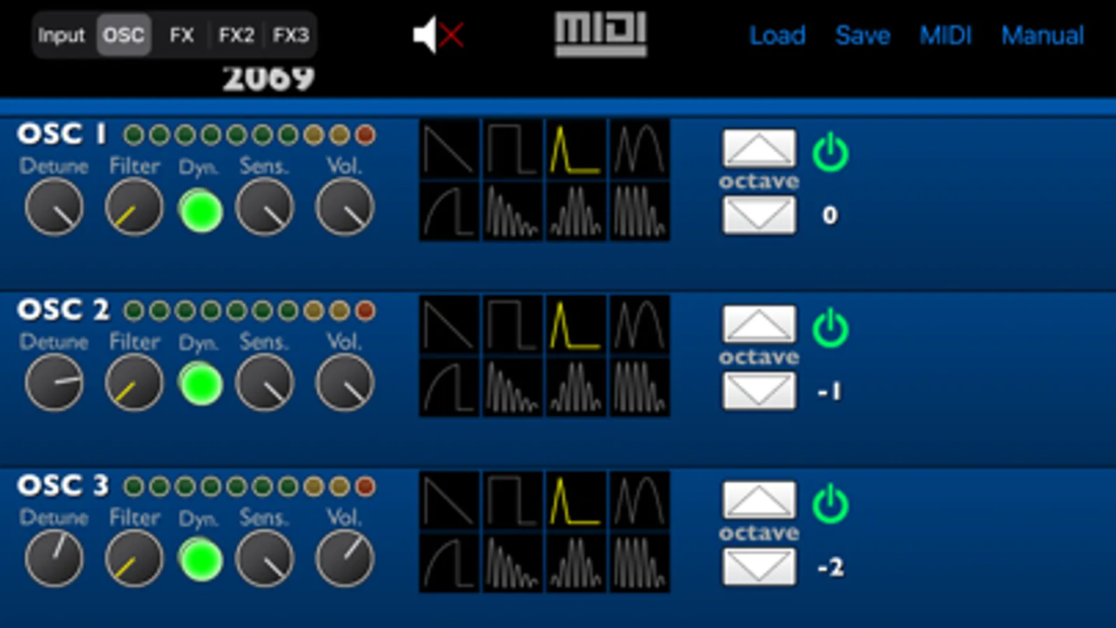 • 3 Phase Distortion Oscillators (4 on iPad) with 8 different wave shapes: Saw, Square, Pulse, Double Sine, Saw-Pulse, Resonant 1, Resonant 2, and Resonant 3