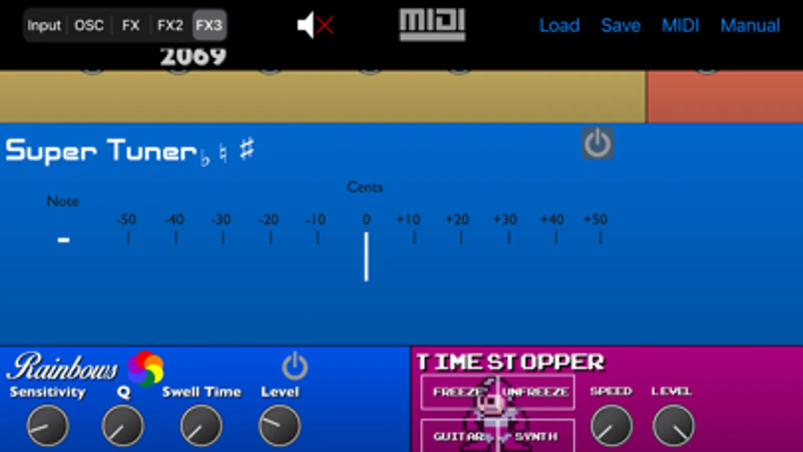 Jam Synth is a fully featured monophonic guitar synthesizer / multi FX for iOS. It tracks the pitch and amplitude of an incoming guitar signal and uses this information to control digital oscillators, adding a unique guitar infused edge to your synth leads. Unlike typical pitch to MIDI converters, Jam Synth forgoes MIDI altogether when producing sounds internally because it is impossible to shoehorn the expressive pitch and dynamics of a stringed instrument into the MIDI standard. Jam Synth can accurately track string bends and vibrato with the extreme accuracy of a strobe tuner (1/10 of 1 cent) to produce much more organic synth sounds than other guitar to MIDI converters, including its own MIDI output (though its MIDI output still creates quite a unique guitar / synth hybrid sound because of its pitch bend abilities). It also features some of the most esoteric and unique FX you can get for your guitar.