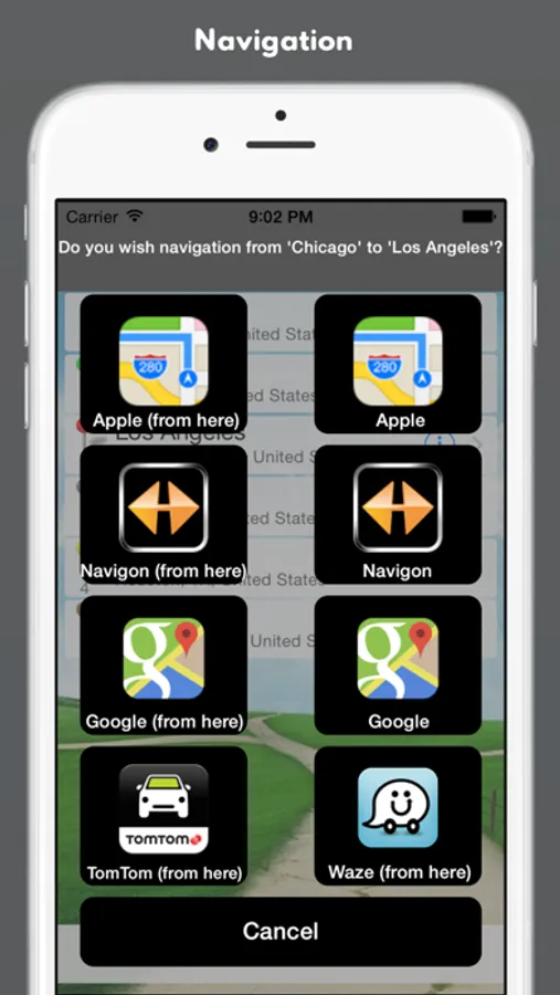 - Export to navigation app Waze