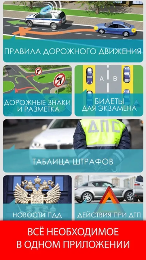 1. МЫ ОПЕРАТИВНО РЕАГИРУЕМ НА ИЗМЕНЕНИЯ! Если изменится какой-либо штраф или вопрос в билете, вам не понадобится обновлять всё приложение - информация автоматически обновится с нашего сервера и вам придет уведомление!