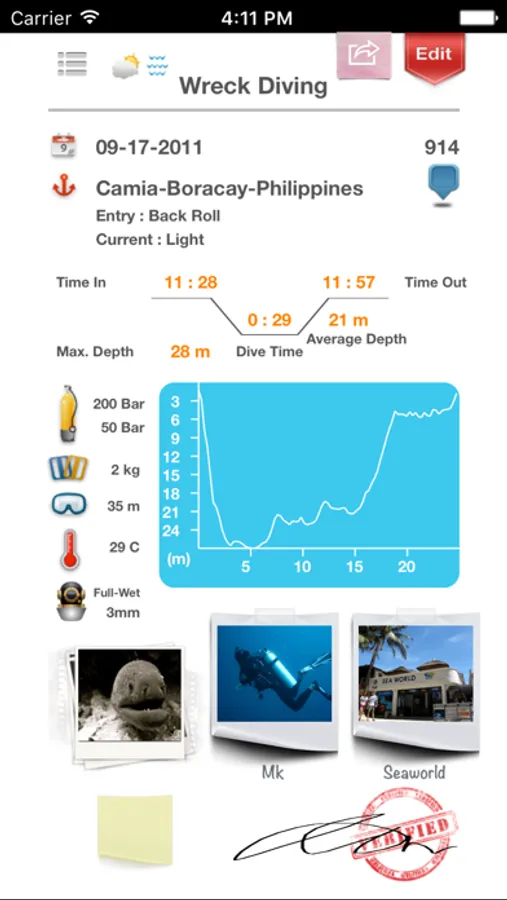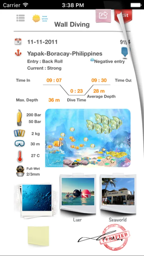 Dive Diary is a scuba diving log book application that looks like a real paper-based log book. Create your own stylish and emotional log book that is easy to use.