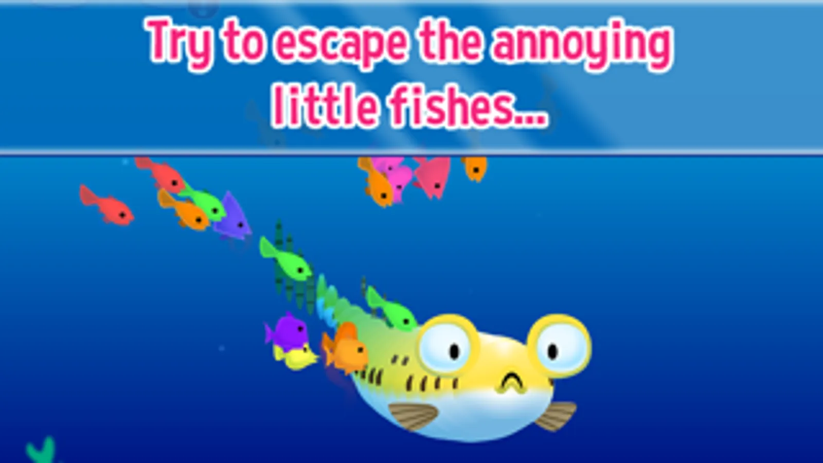 Drag Bob around the screen and group the curious fishes around him. When the time comes, Bob will inflate and scare the fishes away. For every fish scared, Bob earns a coin to spend with new fishes and upgrades.