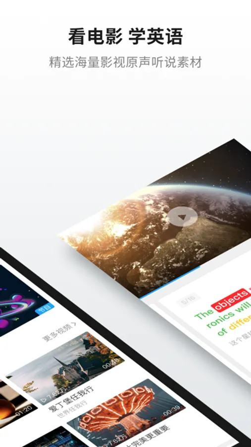 开口练英语太难?如果你喜欢这段视频,那就从跟读模仿开始,开口练习吧。分句完成配音作品;字幕查词,即点即译;慢速播放,不放过每个发音细节,边配边学;还有即时反馈的权威口语测评系统,帮你准确定位发音问题;