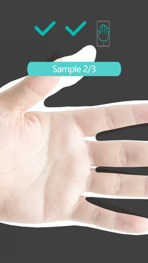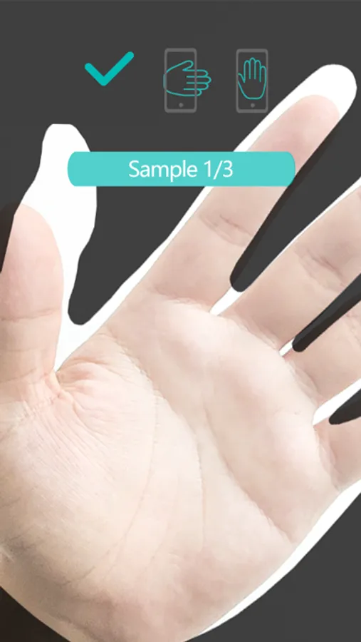 •Position your palm about 3 inches away from the back camera, follow the instruction and the palm print sketch showing on the screen