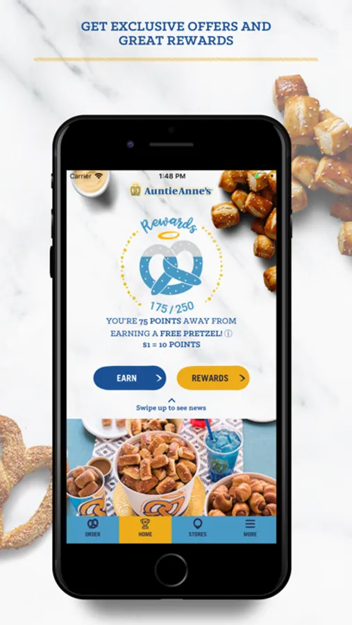 Get exclusive coupons and special rewards, earn points towards free pretzels, and place contactless mobile orders for delivery or pickup (curbside pickup where available). The Auntie Anne’s Pretzel Perks app lets you earn points toward free pretzels with every purchase – Oh how sweet (or salty) it is!