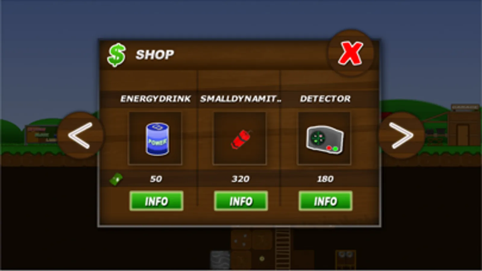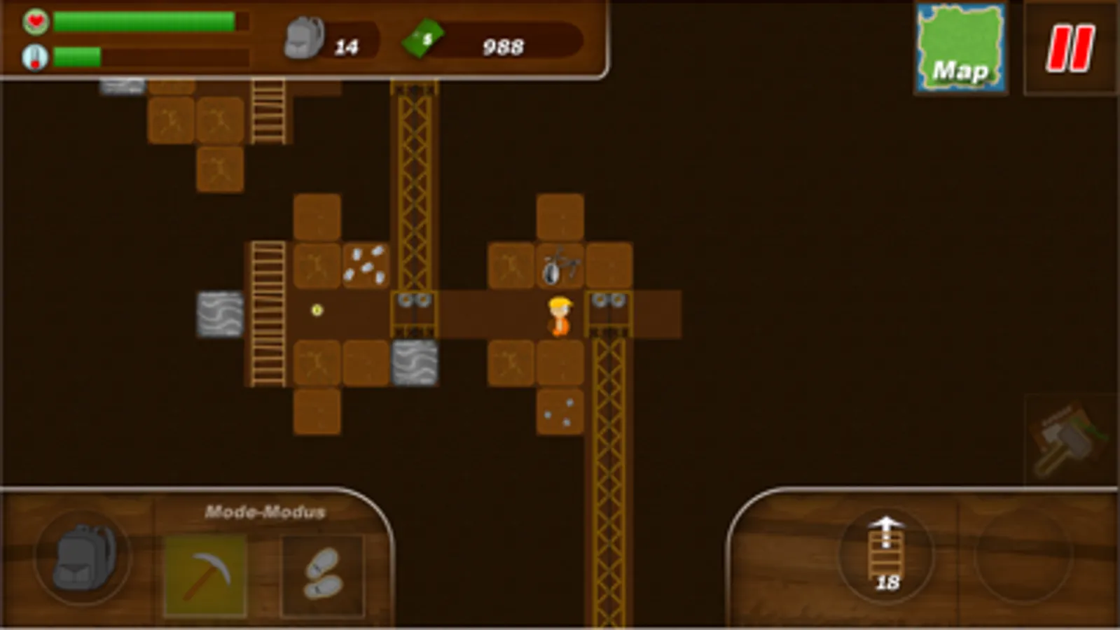 Treasure Miner is a classic sandbox game. Build your own mine infastructure and be the first miner, who discover rare artefacts, ores and gems. Sell your discoveries and expand your mine with new buildings, more lifts or better equipment. You can also upgrade your skills or buy new items, like ladders, lamps, signs or new tools.