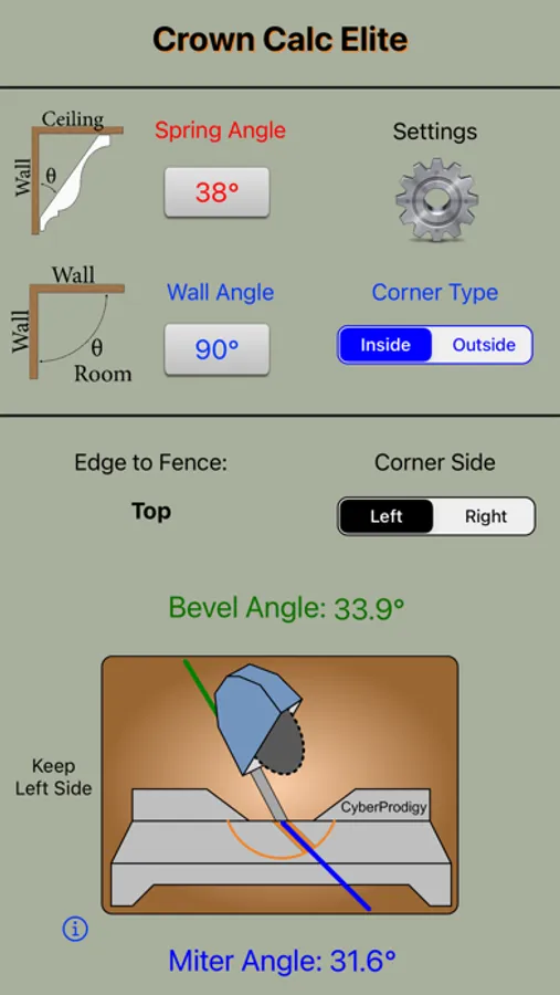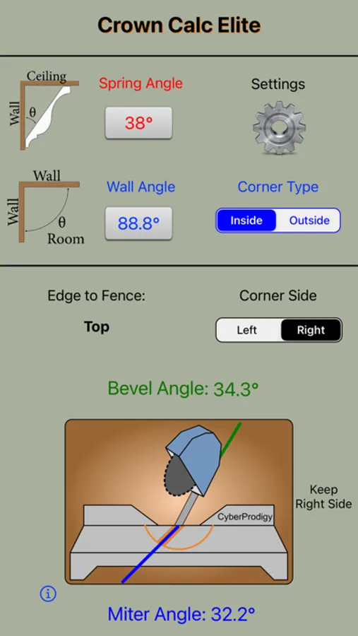 Crown Calc Elite is designed to simplify the task of solving and cutting crown mold angles. Whether you are a do-it-yourselfer or professional tradesman, you'll find this app saves you time and reduces wasted material.