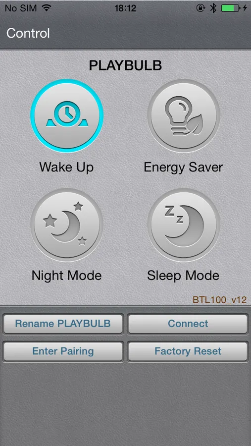 The associated PLAYBULB App currently runs on iPhone 4S, iPhone 5 and iPod 5th generation. Version 1.2 has basic light control and Mode functions, future releases will enhance these further.