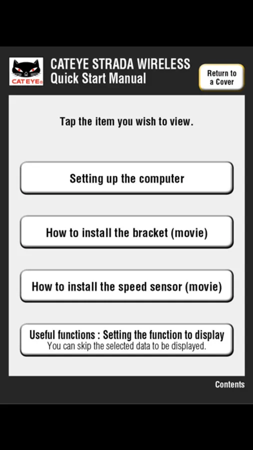 This Quick Start provides information on how to prepare the CATEYE Strada Wireless with dedicated chapters including New Functions, Setting Up the Computer and How to Install the Sensor.
