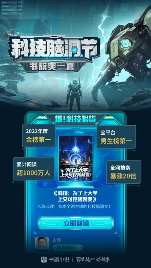 以书旗原创出品的《科技:为了上大学,上交可控核聚变》为首的科技脑洞文,