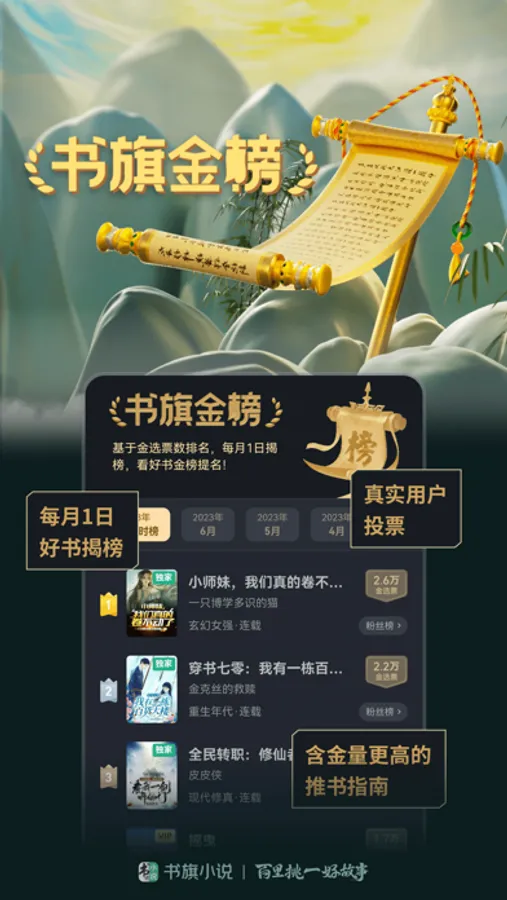 书旗始终将为读者"百里挑一好故事”作为宗旨。