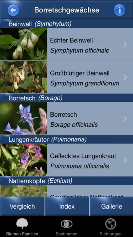 Mit den häufigsten 318 Wildblumenarten in Deutschland und den Niederungen der Schweiz. Diese App ist die meistverkaufte Blumen-App in Deutschland. Mit über 1000 Naturfotos, GPS Lokalisierung, Listen-Funktion, Quiz u.v.m.