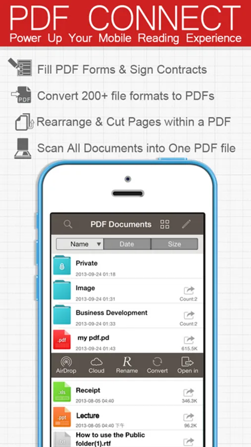 As a top rated paid app in Business category, PDF Connect offers a complete package of document solutions including: