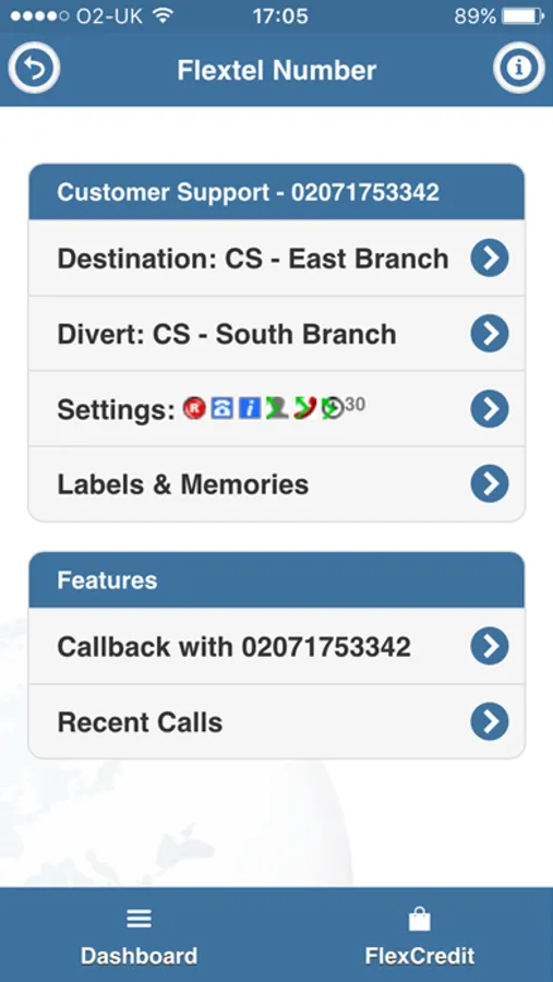 For more information about this app, Flextel numbers, please visit https://www.flextel.com.