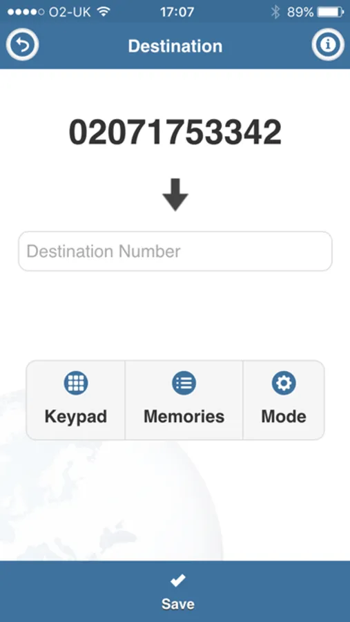 - 'Quick tap' memories (similar to speed-dial) for your frequently used destination phones.