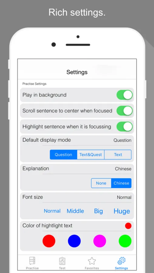2. You can add favorite sentences to favorites list for listening them repeatedly.