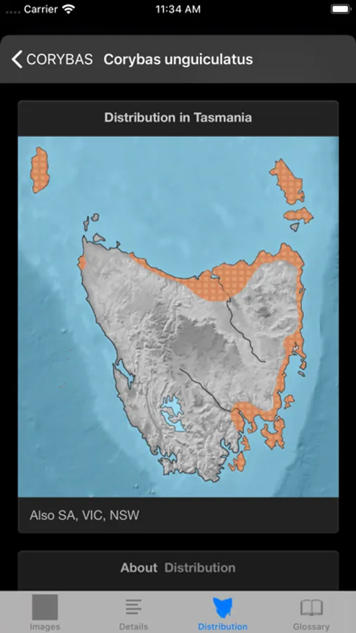 Though primarily aimed at a Tasmanian audience the app also has relevance to mainland Australia with 132, 103, 81 and 45 of the orchids represented being also found in Victoria, New South Wales, South Australia and Queensland respectively.