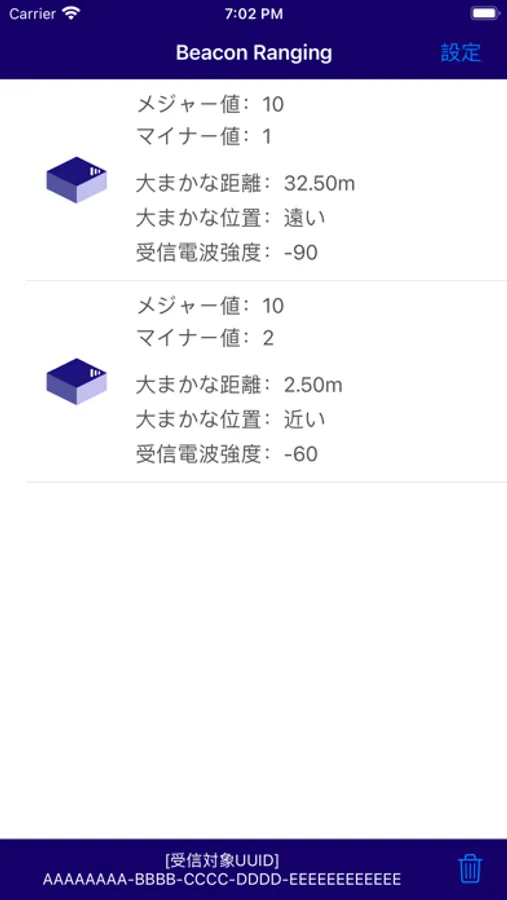 周囲にあるiBeaconモジュールの電波の受信状況を確認することができます。