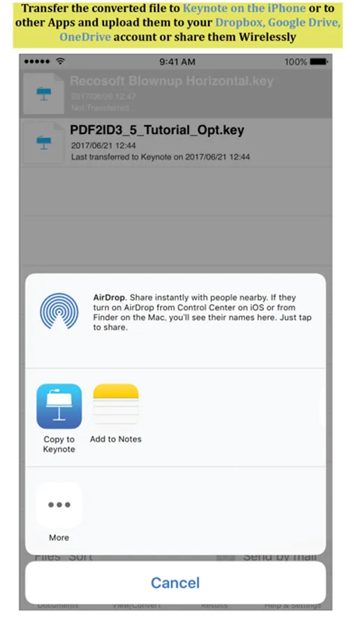 * Transfer your converted files to any other software on the iPhone that can accept Keynote files.