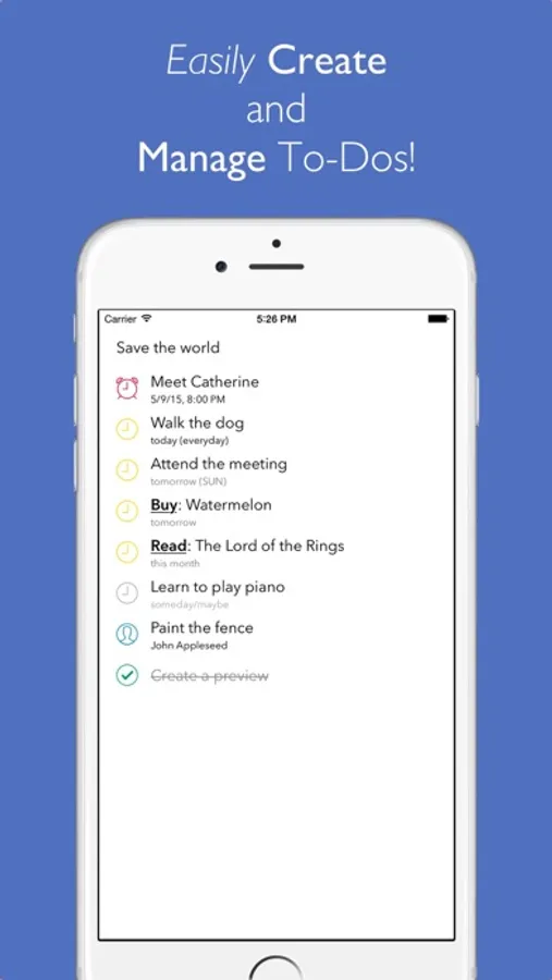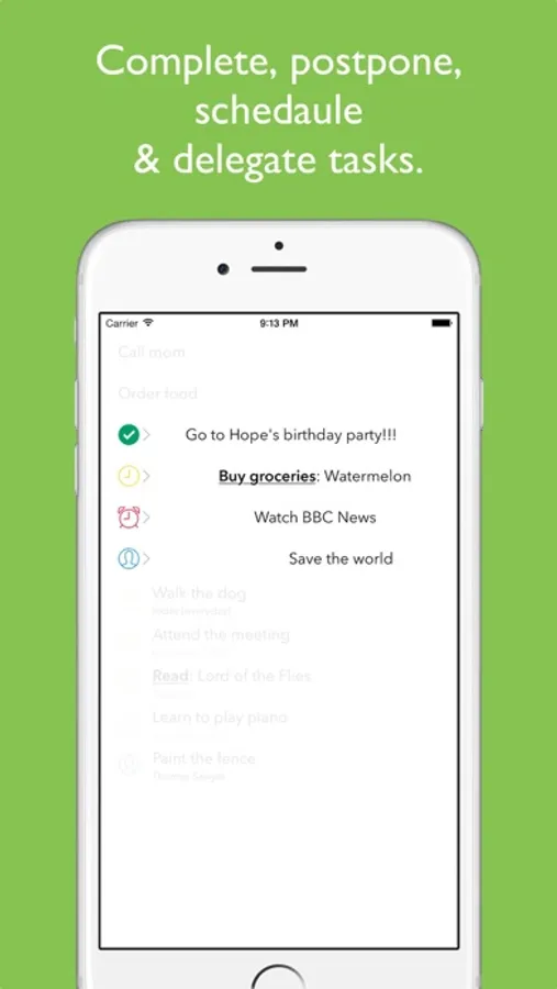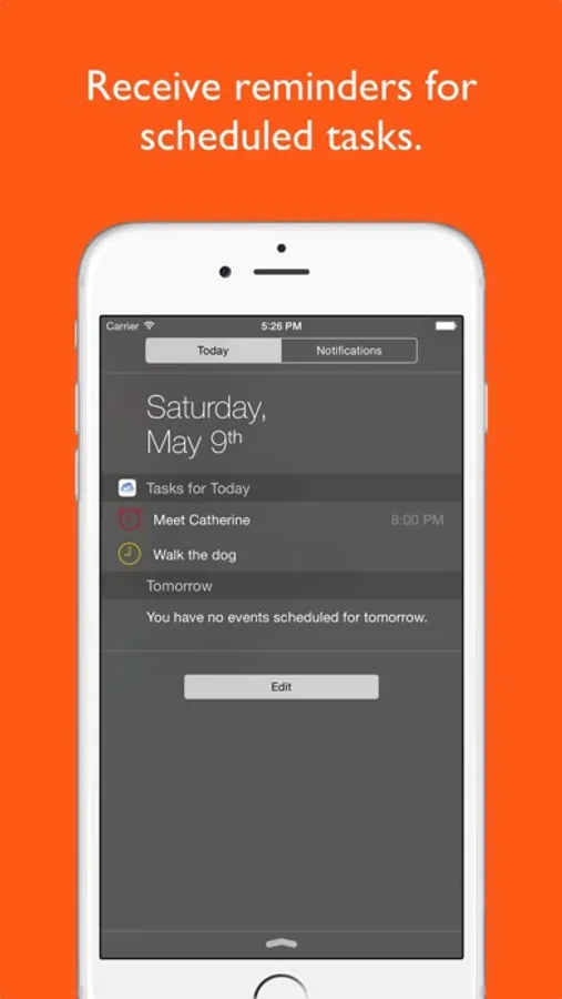 • change order of tasks with the same time, date, or person by touching and holding a task and then moving it to the new place,