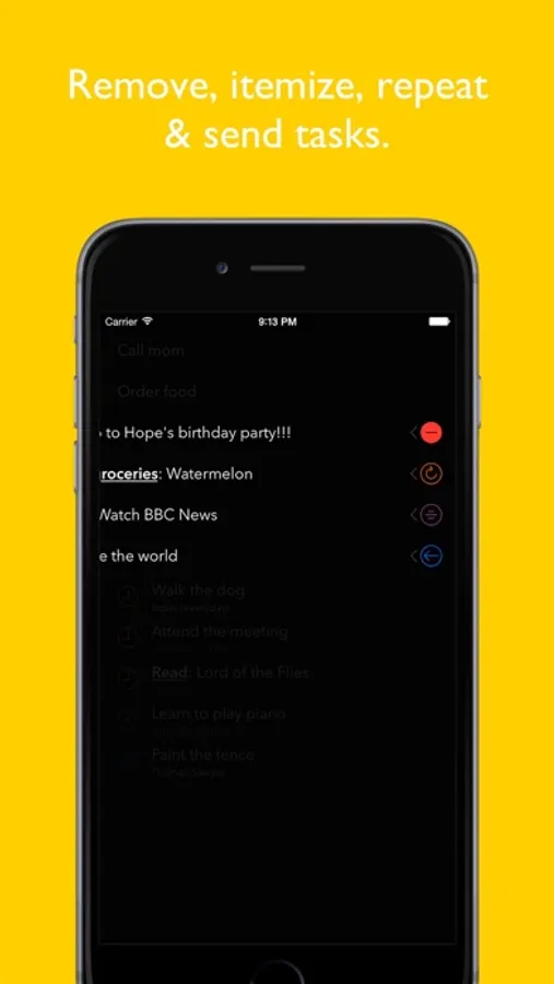 • pull down and release the list to add new task (keep pulling down until you see ∞ instead of + to enter serial addition mode),