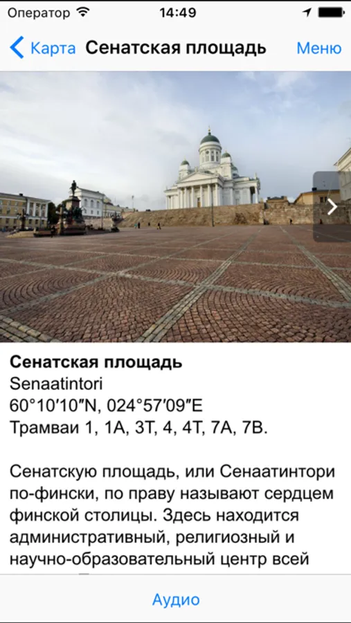 ● АУДИОГИД ПО ХЕЛЬСИНКИ. Рассказы аудиогида озвучены профессиональным диктором. Слушайте рассказы не отвлекаясь от осмотра достопримечательностей и не теряя время. Не стоит портить зрение, читая на ходу текст на небольшом экране.
