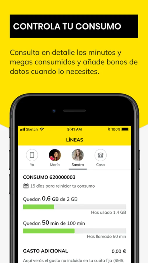 Si quieres tener el control de tu tarifa, descárgate esta app y ahorra cada mes controlando tu consumo de datos o voz y gestiona tú mismo de forma comoda y sencilla tus líneas.