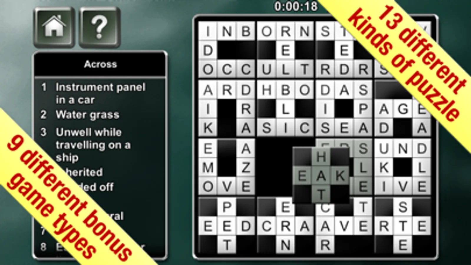 With the widest selection of puzzles in one game, we have something for everyone. From Crosswords, Codewords, Wordsearch, Kriss Kross to Link-a-Pix, Spot The Difference, Sudoku and Hangman - a total of 13 puzzle varieties and 9 bonus games. Try them all for FREE!