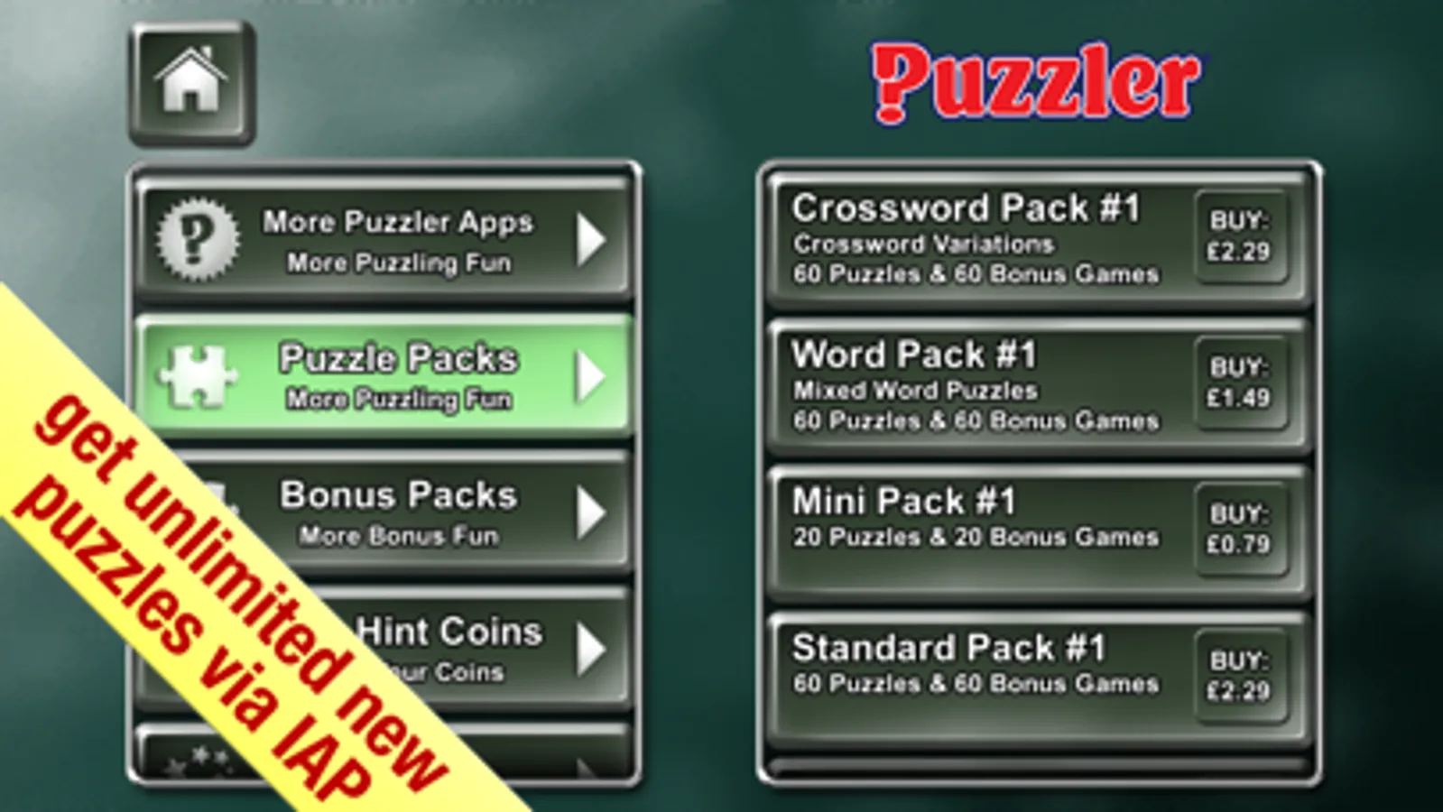 • UNLIMITED PUZZLES – Ability to purchase and consume as much content as you want, as many times as you like, from within the game store.