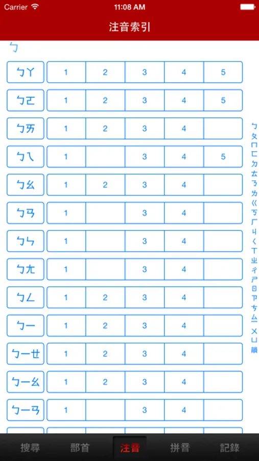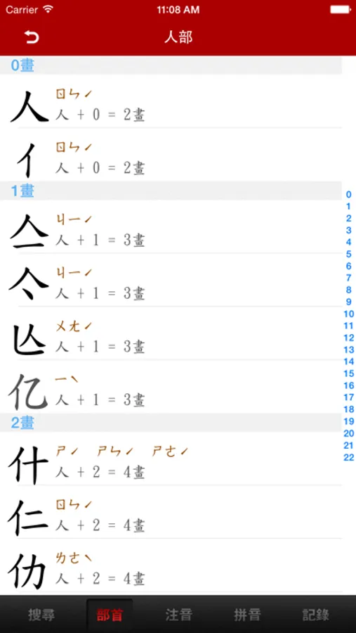 + 支援漢字搜尋方式,支援部首、注音、拼音檢索方式。