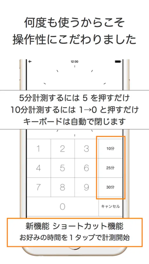 5分測るにはキーボードの “5" を押すだけ。 (1タップのみ)
