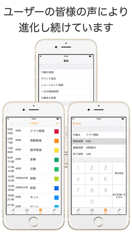 タイマーで時間を制限することによって集中して行動しつつ、行動記録もできる唯一の時間管理アプリです。